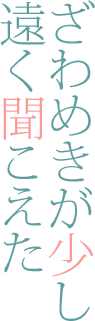 それから「何着ていくんだよ」とか「もうすぐやな、気張りや」とか言ってくる先輩達にいらいらしているうちに時は流れ、今日はもうそのお祭りの日だ。西の空にはまた真っ赤な夕日が沈みかけている。待ち合わせ場所の駅前に早く来すぎた日吉は、駅に備え付けられている時計と、自分の携帯電話を交互に何度も確認する。落ち着け、と自分に何度も言い聞かせてはいるものの、この状況で冷静でいろという方が無理な話だった。